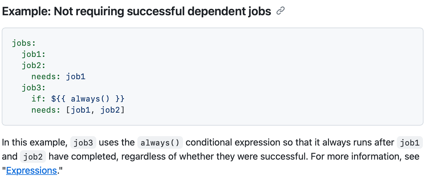 하지만 만약 의존하고 있는 Job의 성공 여부 상관없이 항상 실행하고 싶다면 아래 방법을 활용하면 된다.
